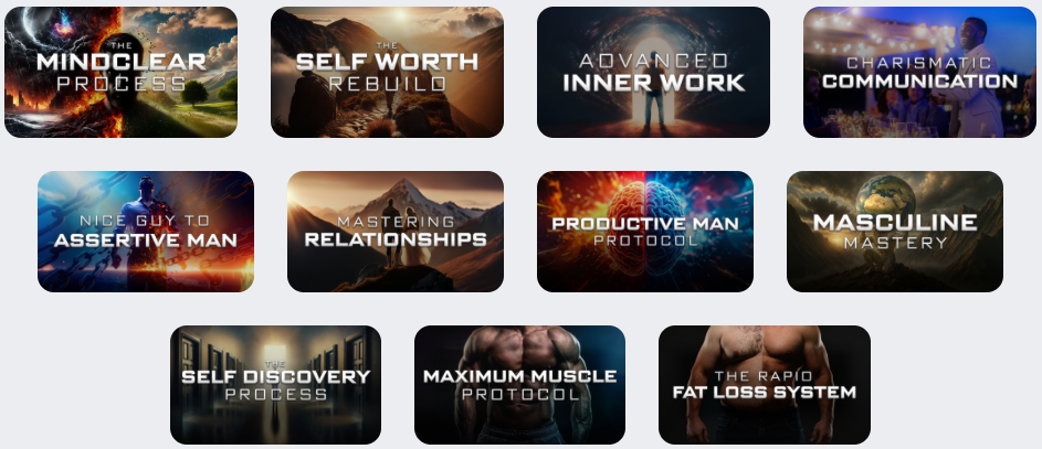 You'll get the tools and trainings to stop doubting yourself, to develop every single area of your life as a man and to build genuine self worth.